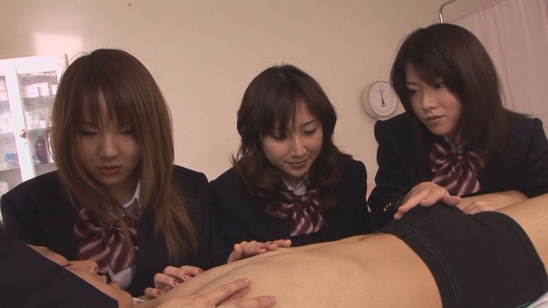 彼氏のデカマラ自慢をした彼女の親友達は彼氏の肉棒に興味津々!彼氏を保健室に連れ出して彼女を含めた4Pに突入!全員イキまくりSEX!